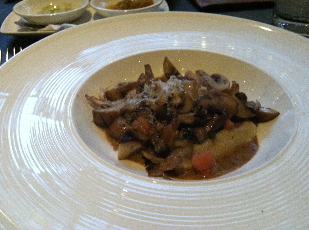 I ordered a half order of “Truffle Ricotta Gnocchi” with Northern Woods wild mushrooms and porcini cream to start and the “Miso-Glazed Black Cod” with stir-fried mustard greens, jasmine and black rice for my entrée.