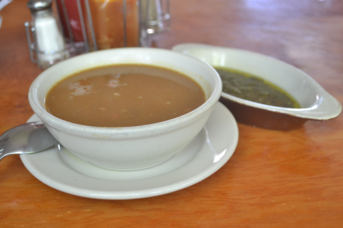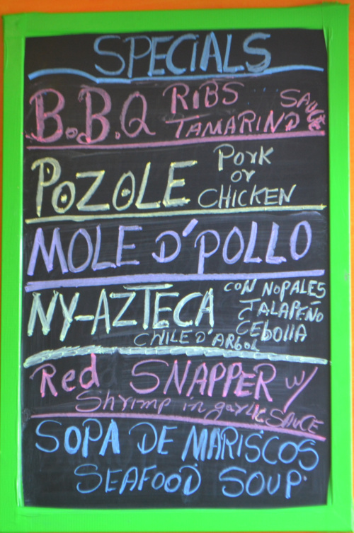 Locating this little gem is a little difficult. If you are heading towards Westport on Route 1, make a right at the light where Pennzy’s Spice is located and Los Poblanos is one of the five storefronts immediately to your left. Park behind the building and enter from the rear. There are three four-person booths and a couple of tables. The walls are brightly painted adorned with regional posters and a Spanish language TV offers a little entertainment.