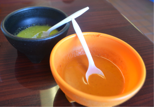 The menu is brightly colored with various Mexican offering. I wanted to sample Los Tacos and ordered four of them. Once delivered the first item I noticed was the amount of filling, Los Poblanos significantly fills the soft tacos. Green (cilantro) and orange (I would guess habanero) sauce accompany the tacos. The cilantro sauce was great and complemented the flavors and the orange was a little too spicy for my palate but had great flavor.