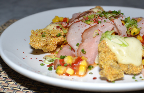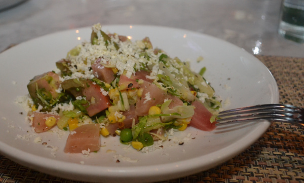 The “Salad of Thumbelina Carrots,” et. al. was a big hit. Included in the potpourri of colors were breakfast radishes, beets, kumquats and avocados. Each was sweet and incredibly delicious; I loved the textures and flavors of each of these vegetables. I was not as fond of the ginger yogurt that accompanied the salad and thought it did not complement, and almost fought with, the sweetness of the vegetables.