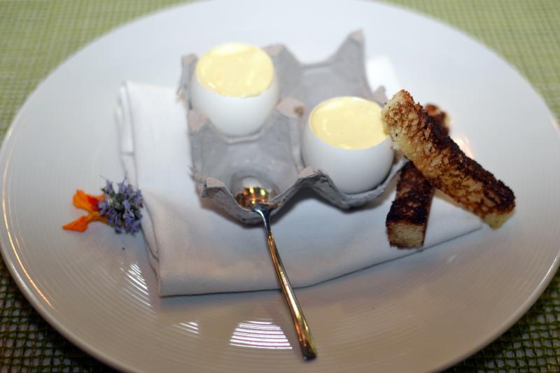 As we overlooked the kitchen we noticed one dish that was most often ordered, the Blis maple bacon and eggs. Eggs shells were first filled with creamy scrambled eggs, a little maple syrup was added, a touch of candied bacon and then topped with a mild cheese. Each bite was a perfect blend of Sunday morning breakfast memories. Served with buttered and grilled brioche, this would make for a wonderful brunch dish.