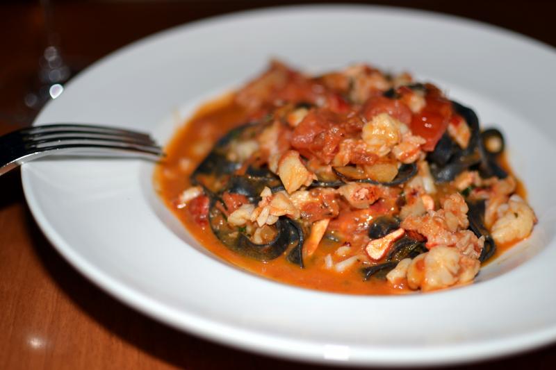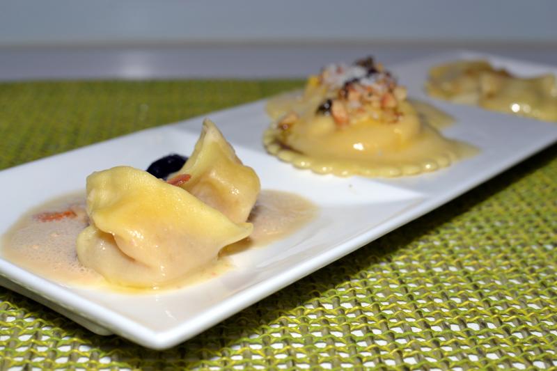 A trio of pasta creations were next placed in front of us and included red kuri squash ravioli; pork cheek agnolotti; and foie gras cappelletti. This is an outstanding choice to understand the various directions that pastas can take. The sweet red kuri squash ravioli was accented with hazelnuts, sage and parmesan. The sweetness of the squash and the earthiness of the hazelnuts were a perfect pairing and was fantastic. The pork cheek filling to the agnolotti was delicious and was complemented by the smooth cream. The richest of the three was the foie gras cappelletti, served with drunken prunes and amontillado sherry. The combination of sheer decadence of the foie paired with the sweetness of the prune was brilliant.