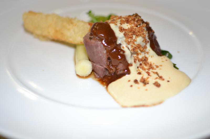 The Wagyu beef tenderloin was served with a rich coffee infused Cumberland sauce, duck fat potatoes, pickled shallots and leeks. The beef was prepared to medium rare, incredibly tender and rich in flavors. The earthiness of the coffee and walnuts in the Cumberland sauce added to the depth of flavor and then the crispiness of the fried potato and the leeks added incredible flavors to this already outstanding steak.