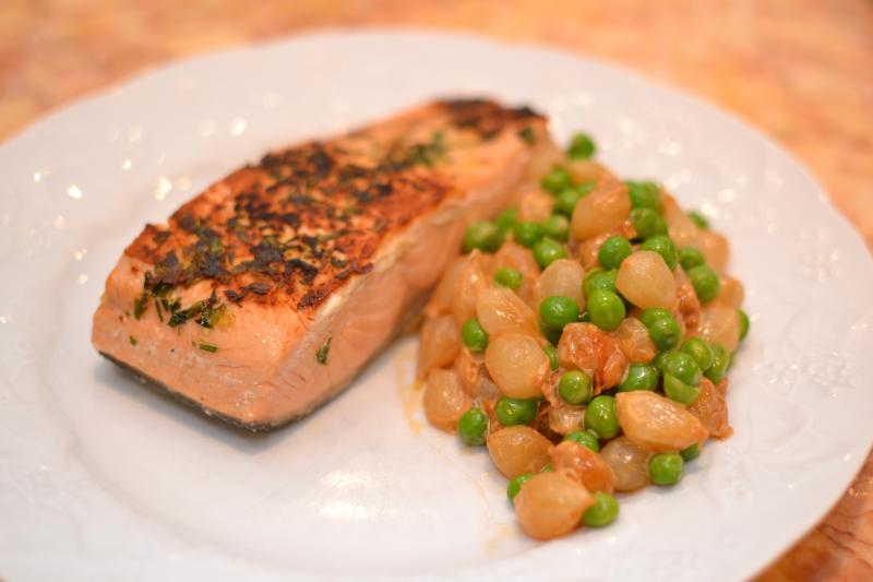 CTB S5Result – We did not like this dish. The seasoning on the fish was excellent and I will use this combination in the future, the recommended 7-8 minute cooking time was much too long. The salmon was vastly overcook. I did not like the onions and peas at all. The flavors were off and not enjoyable. This is not a dish nor a recipe I would recommend. Again, the portions were generous, two six-ounce filets and plenty of onions and peas.