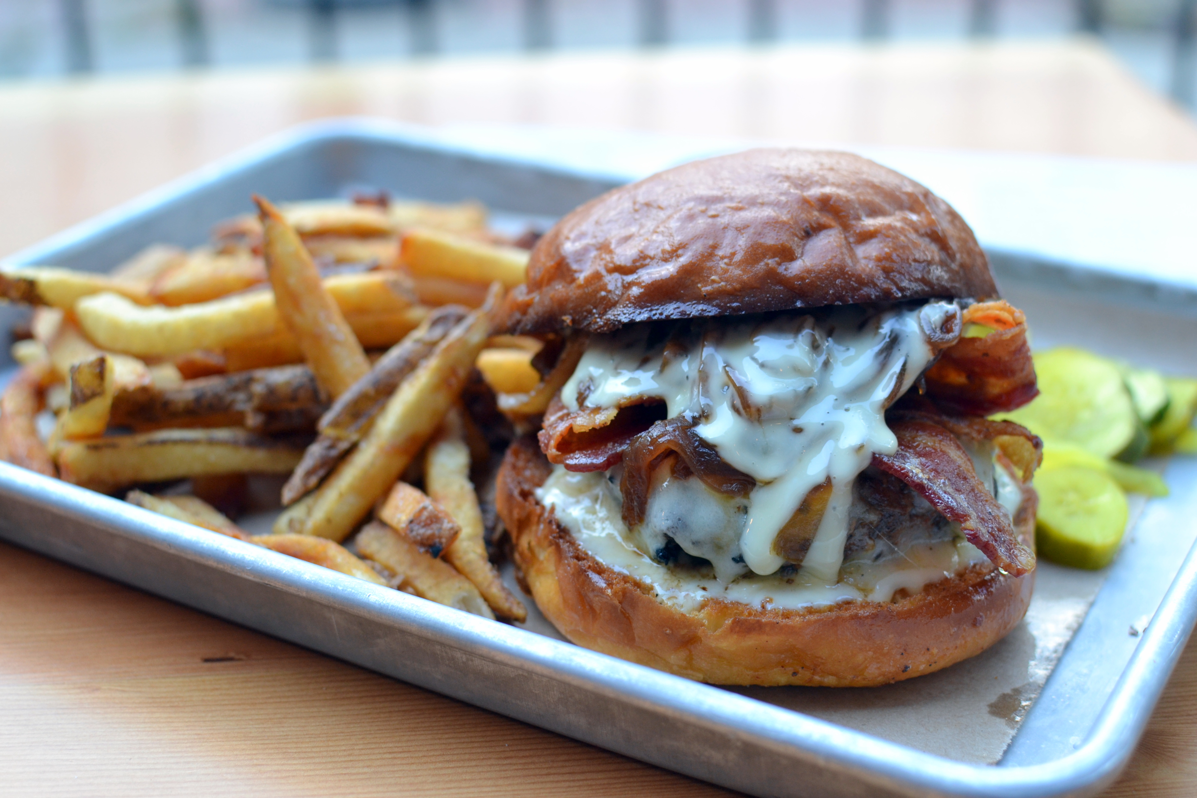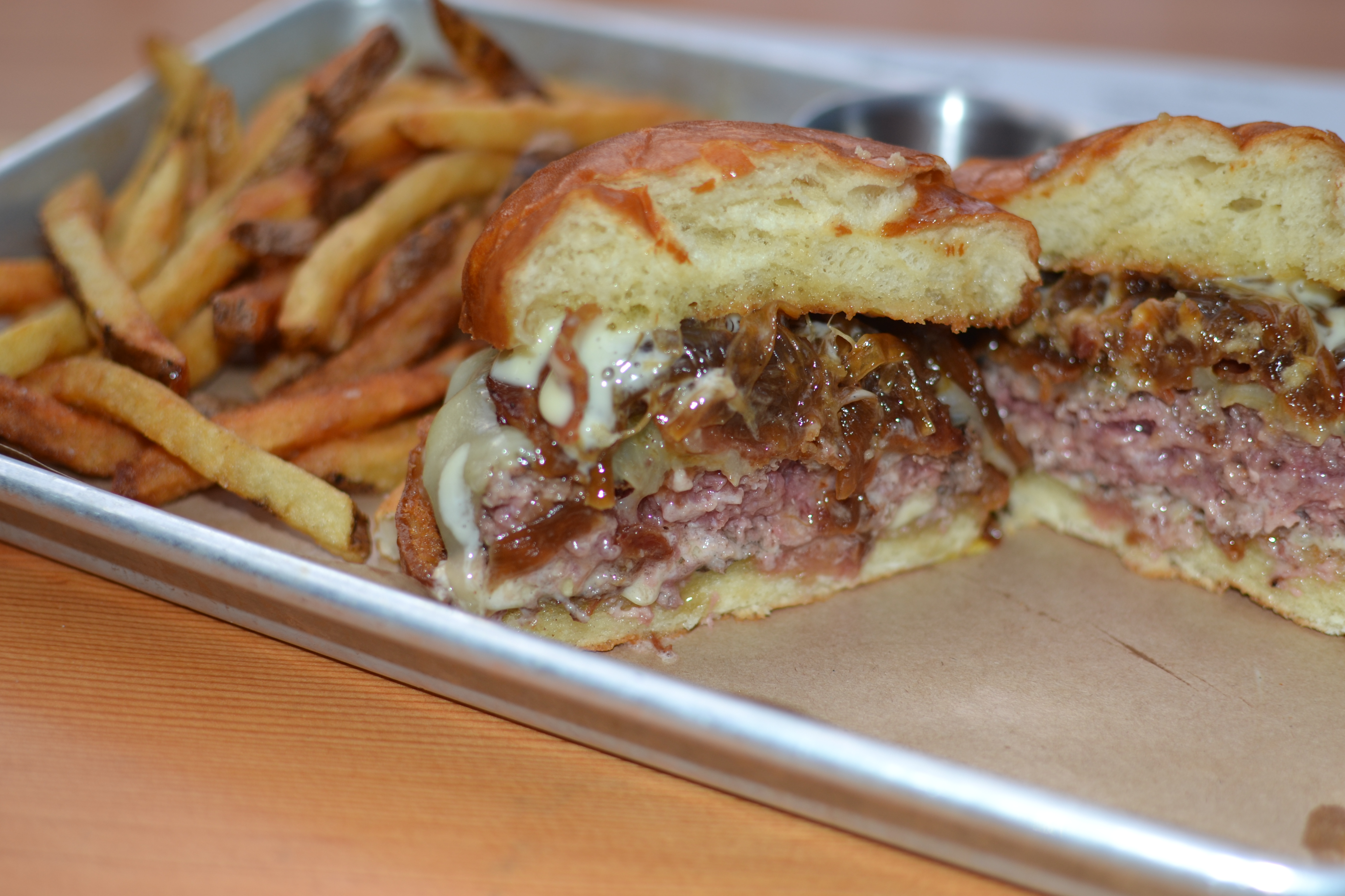 The PRIME BURGER started with a 3-cut blend ground beef from Saugatuck Craft Butchery, combined with a little dry-aged porterhouse. Chef Falco topped the patty with melted two-year old Vermont Cheddar cheese, a slice of mildly pickled Lucky Real Tomatoes, and shredded smoked lettuce. The burger sits atop an Umami Bomb sauce and encased in a Wave Hill brioche bun; served with a large helping of French fries. The addition of the aged porterhouse to the blend created a slightly deeper flavor. The smoked lettuce was an interesting twist, beautifully complementing the smokiness of the meat, and the cheese added a little creaminess. The Umami Bomb Sauce (a mixture of soy, fish sauce and mushroom stems) was a new element and introduced earthy notes to this burger. It was fantastic and a competitor for CTbites’ “Best of…” list.