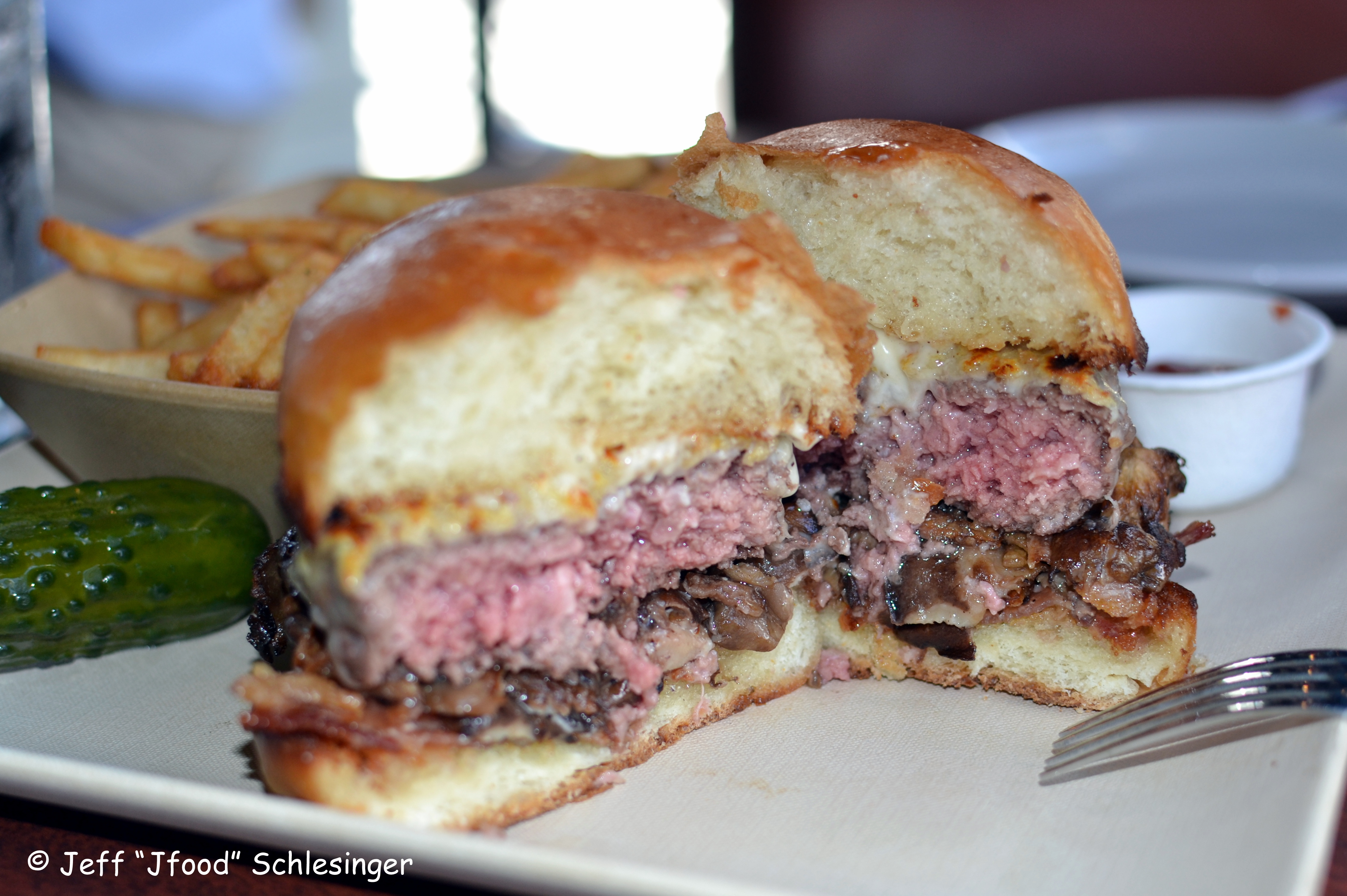 The burger arrived and the first item I noticed was its size, particularly its height. The patty must include at least 8-ounces of meat (sourced from Saugatuck Craft Butchers), covered in melted Swiss cheese. The cheeseburger sat atop the bacon, fronions and an array of sautéed wild mushroom. I cut in half and it was cooked absolutely spot on to medium-rare, the interior glistened with juice. A quick bite confirmed that Saugatuck Craft has great meat and the kitchen took care in forming the patty, allowing the meat to maintain its medium grind. The oozing Swiss cheese delivered creaminess and a great nuttiness. The fronions, wild mushrooms and bacon were intermingled under the patty, with the earthiness of the mushrooms the centerpiece of the flavors. The bacon was mild with just a touch of saltiness and the onions added additional saltiness. The pepper mayo added creaminess and a little spice. The Wave Hill bun continues as my bun of choice.