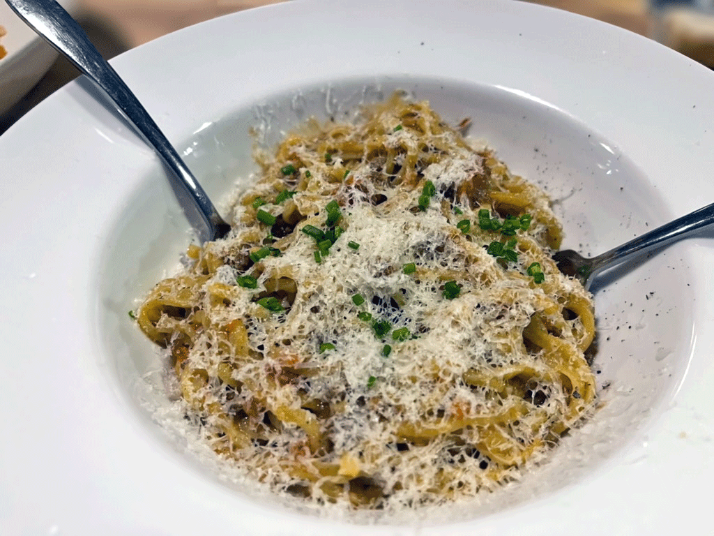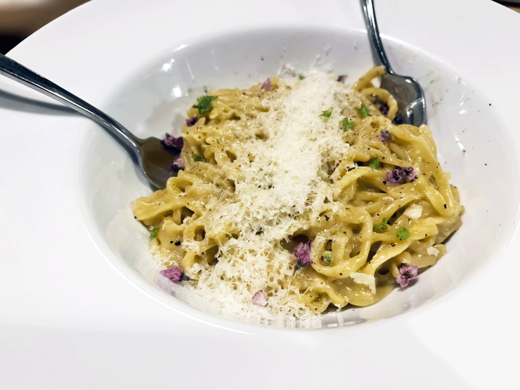 I saved the fusion-inspired ramen noodle dishes for last. When we first saw that the menu included Cacio e Pepe Ramen (ramen noodles, Parmesan, black pepper, salt, soy sauce, and butter), we knew it would be included in the order. When our server mentioned one of the daily specials was a Ramen Bolognese, we decided to add that as well. While I loved the creativity, the Bolognese was a bit tangy for my taste, and the Cacio would have benefited from the inclusion of more sauce. They were good but sitting on the table with so many stellar dishes, these two, unfortunately, took a backseat.