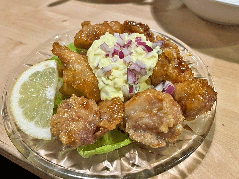 Now onto the two other protein-focused dishes that I highly recommend. Both the Kamoni (slow-cooked duck breast with scallion, yuzu candy, and soy sauce) and the Chicken Nanban (fried chicken with tartar sauce, egg, mayo, pickled cucumbers, soy sauce, and rice vinegar) were delicious. The duck arrived simply sliced with charred scallions on top. The texture remained firm, and the scallions and sauce added a wonderful depth and complexity. The dark meat fried chicken was perfectly crisped on the exterior and was plated around a creamy, egg-salad-like mixture. The contrast of the crunchy hot chicken with the cool, smooth sauce was spot on.