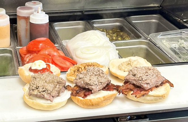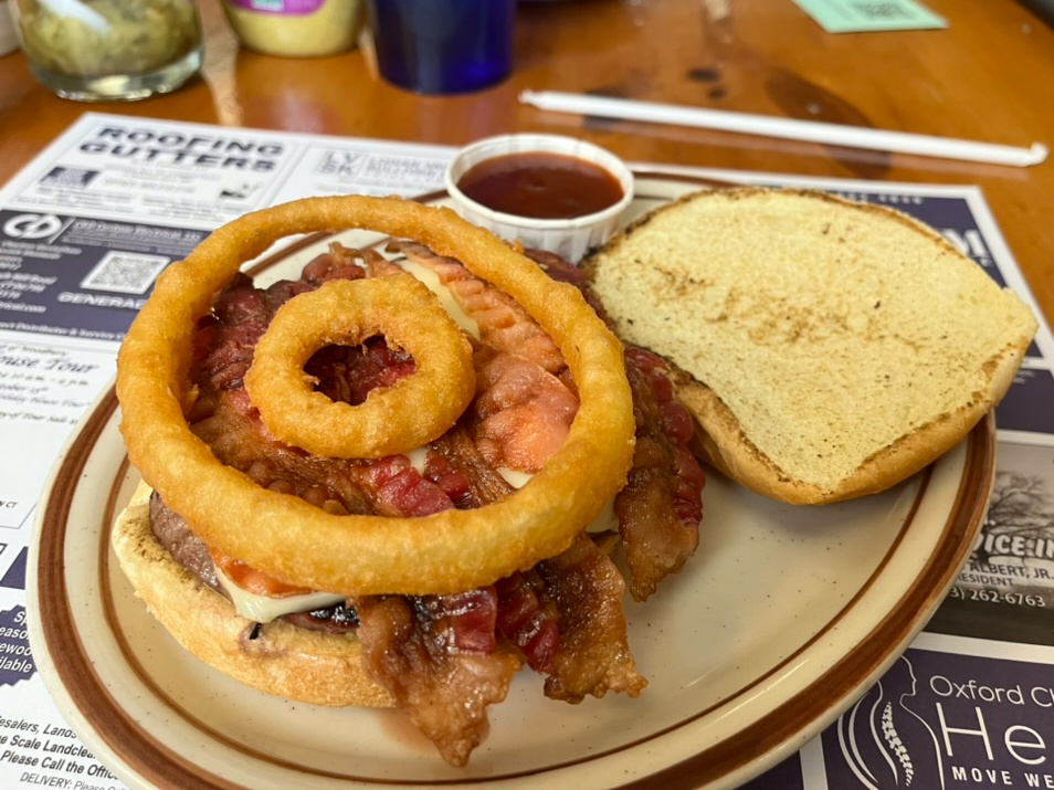 On the second visit I ordered the steak tacos. A swath of sour cream sauce was first shmeared onto three large soft tortillas and topped with a slice of steak, shredded lettuce and Monterey Jack cheese and finished with a little pico de Gallo salsa. The steak was prepared to medium rare. After one bite, I knew this was not for me. The steak was covered with a seasoning package that was both overwhelmingly salty and incredibly spicy. The salsa was also spicy. My wife offered half of her burger and when I tasted it, it was not even as good as the OK burger from the first visit, with a spongier consistency than my first visit. The server and manager asked if I would like something else, and they did a good job, but I chose to call it a night.