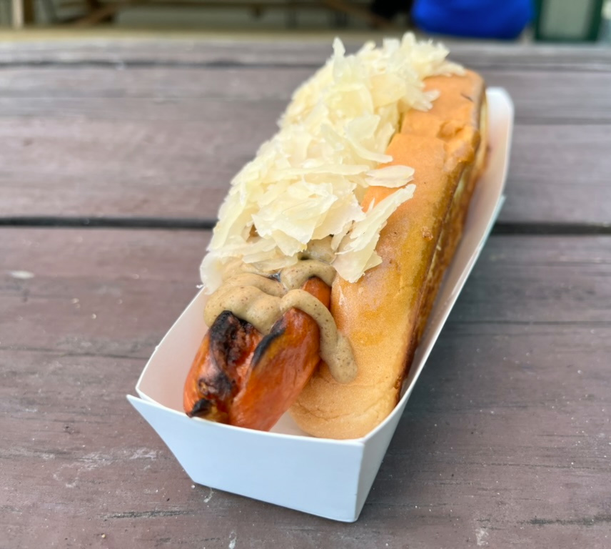 On a quiet Sunday afternoon, we chose an outside table with out of state friends. I decided to order the Fried Chicken Sandwich, described on the menu as crispy fried chicken thighs, Jalapeno cabbage slaw, shallot aioli, pickles, on a toasted brioche bun, served with Old Bay shoestring fries. Sounds like a winner, but I wasn’t sure how spicy the slaw would be with the addition of the jalapeño, so I asked that this be served on the side.