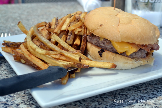 I ordered a 6-ounce beef patty (medium-rare) with bacon and American cheese. Fries are included and I decided to keep it simple with regular fries, versus substituting (for a small fee) with sweet potato fries or onion rings.